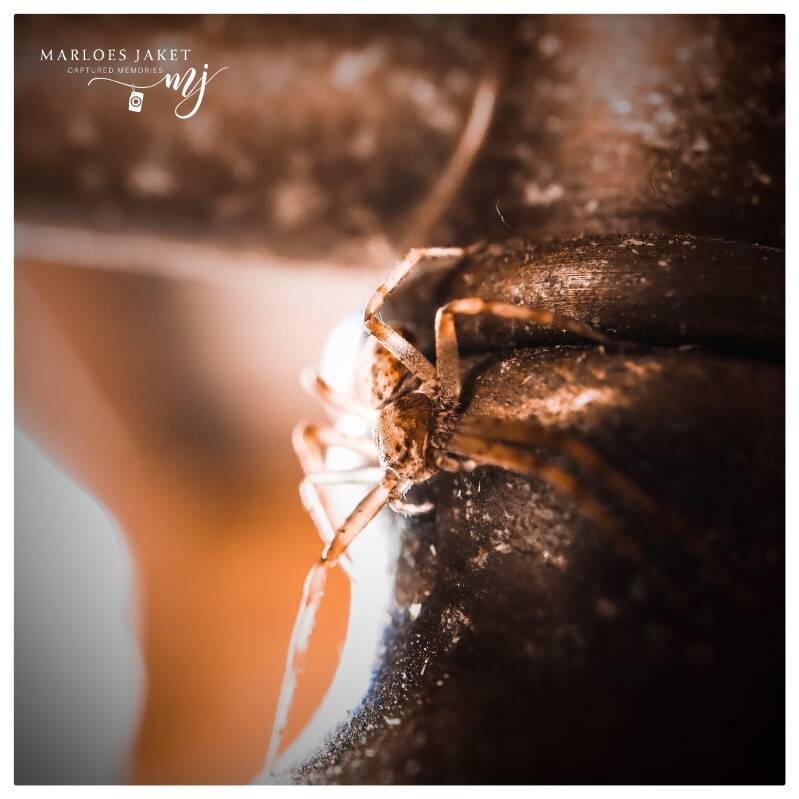 De spinnenwebben lijken net kralenkettingen. Op de foto hierboven zie je de prachtige weerschijning van de paarse hei in het web.